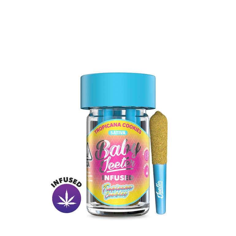 Tropicana Cookies Baby Jeeter Infused – Five .50g Joints 2.5g Sativa 27.09% THC Indoor Grown Infused with Distillate Oil & Kief