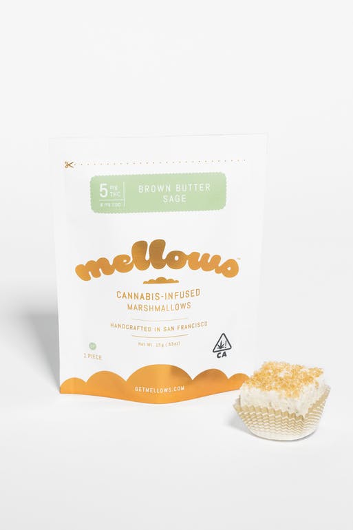 Brown Butter Sage Mellows are fragrant with toasted brown butter and warm sage; these marshmallows are unexpected, refined, and utterly decadent. This single serving package contains 1 piece (5mg THC, Sativa). This flavor is Gluten Free.