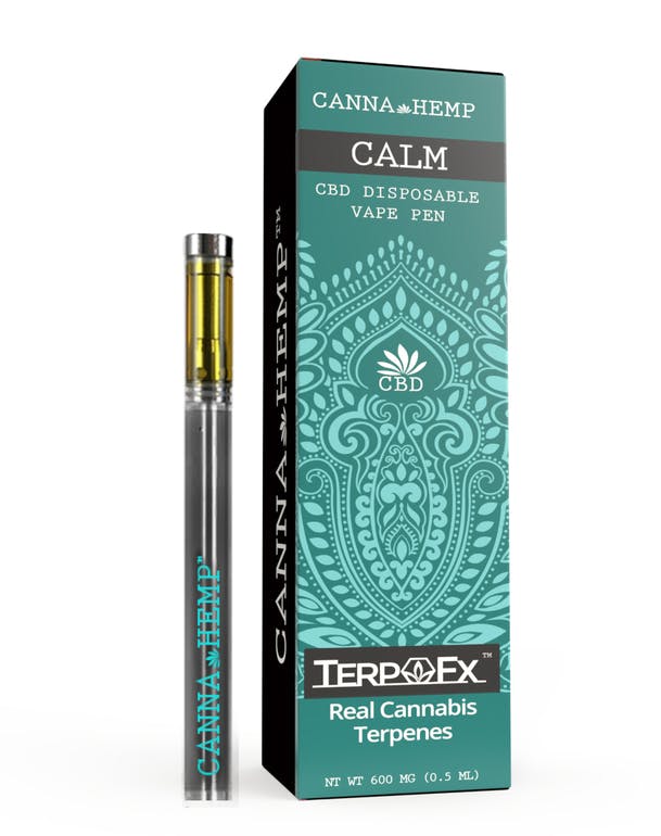 The Calm disposable CBD vape pen from Canna Hemp™ is made with a custom TerpFX™ blend to aid in alleviating stress thanks to the relaxing myrcene, mood-boosting limonene, and pain relieving eucalyptol. The vape has an earthy and woody flavor with a burst of citrus.