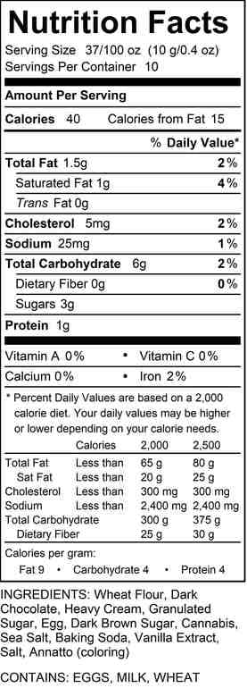 America’s favorite cookie is now squared! Enjoy this buttery classic delight, loaded with dark sweet chocolate chips. Try it warmed in the oven for a chewy-gooey experience or with a glass of milk. Contains 100mg of THC (10 standard doses) per package. Squookie, the cookie with an edge! Cutting guide included in package.