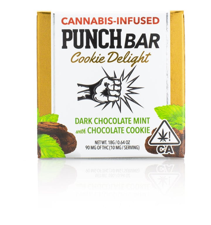 The PunchBar just got even better! Rich dark chocolate with mint flavor on top and a perfect chocolate cookie on the bottom. 90mg THC.
