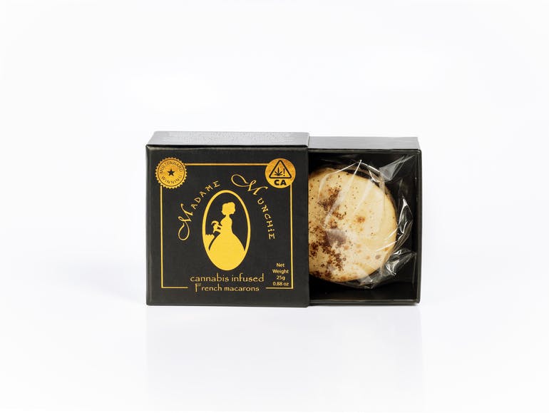Infused with our house-made cannabis butter sourced exclusively from our farm in Mendocino county. Best kept refrigerated or frozen. Each box contains 1 macaron with 40mg THC.