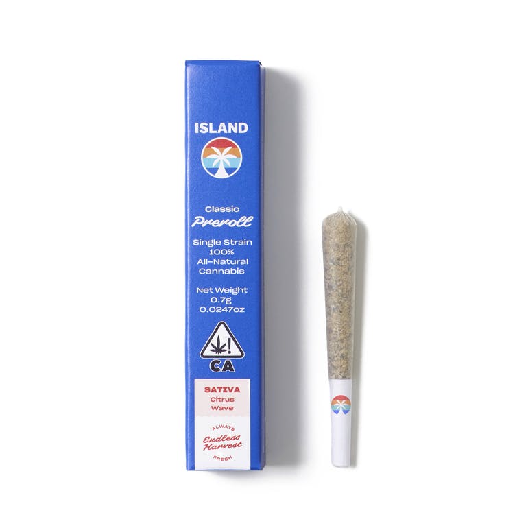 Soak up the sunshine in a rush of zesty joy with an Island Citrus Wave Classic. This perfect preroll is freshly hand packed with Citrus Wave, Island’s sweet and sour sativa, which is perfect for a bright day out in the Golden State. With aromatic notes of lemon and orange, this uplifting strain is sure to welcome a powerfully happy mind and body experience. Citrus Wave is from lemon and tangie dominant families with limonene and pinene dominant terpenes. No trim, no shake, no blends. Only all natural, triple-tested, single-strain, whole flower California cannabis.