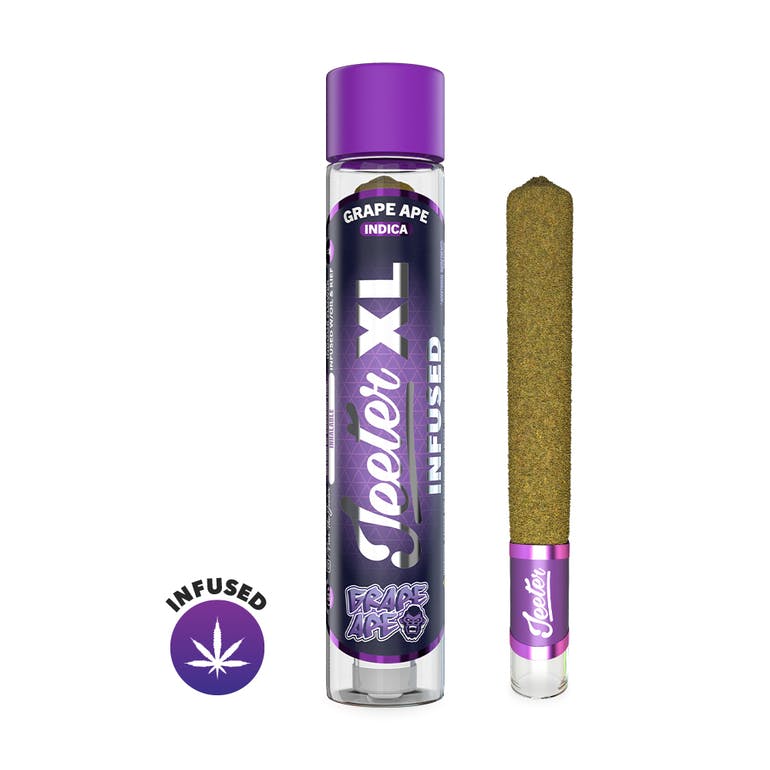 Grape Ape Jeeter XL Infused Rolled Joint: 2g Joint Indica 35.11% THC Indoor Grown Infused with Distillate Oil & Kief