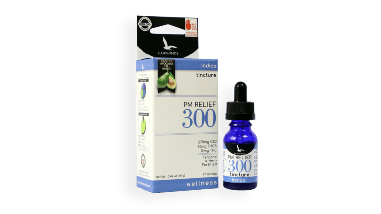 Product Description: The Fairwinds Relief 300 series brings your wellness to a new high by blending DOH-certified cannabis oil with powerful, clinically-proven botanical extracts. Designed for clear-minded support, the Relief 300 series leverages its cannabis power off of a super serving of CBD and a micro-dose of THCA and THC to catalyze and enhance the effects. The PM Relief 300 contains a calming and relaxing terpene profile typical of Indica cannabis. However, these terpenes also play a vital role in increasing absorption and enhancing effects.