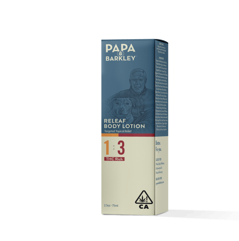 Papa & Barkley’s Releaf Body Lotion is the first and only THC lotion in the California cannabis market that’s made using fresh-pressed rosin (rather than THC distillate or isolate)! It combines the powerful effects of THC-rich rosin and hydrating agents in jojoba oil, shea butter and mango seed oil. Enjoy the clean, citrusy scent, breathable formula and smooth application to help reduce discomfort and leave skin feeling nourished.