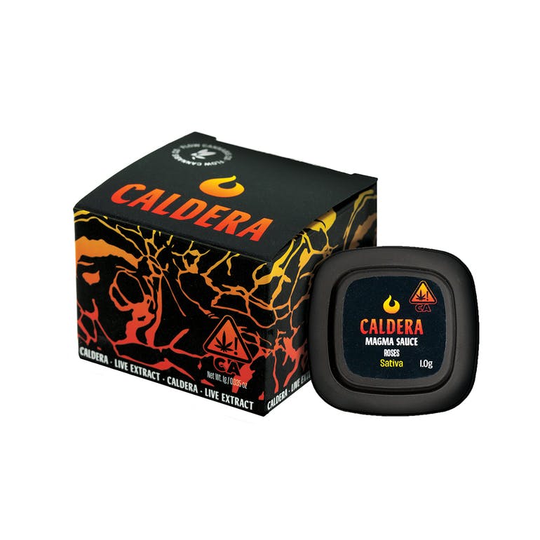 Roses has a fresh floral taste with an uplifting effect that’ll transport you to a galactic rose garden with a smile on your face. Roses Magma Sauce is a Sativa Live Resin sauce made from 100% sungrown cannabis using an ultra-cold extraction process with High Terpene Extraction (5.19%) and THC (78.04%). Caldera Magma Sauce is created by evenly distributed THCa crystalline with luminescent clarity, creating a cocktail of liquids and solids for a slushy-like texture. The dominant terpenes are Terpinolene, Limonene, and Myrcene, creating a complex terp profile for a full-spectrum, high Entourage Effect.