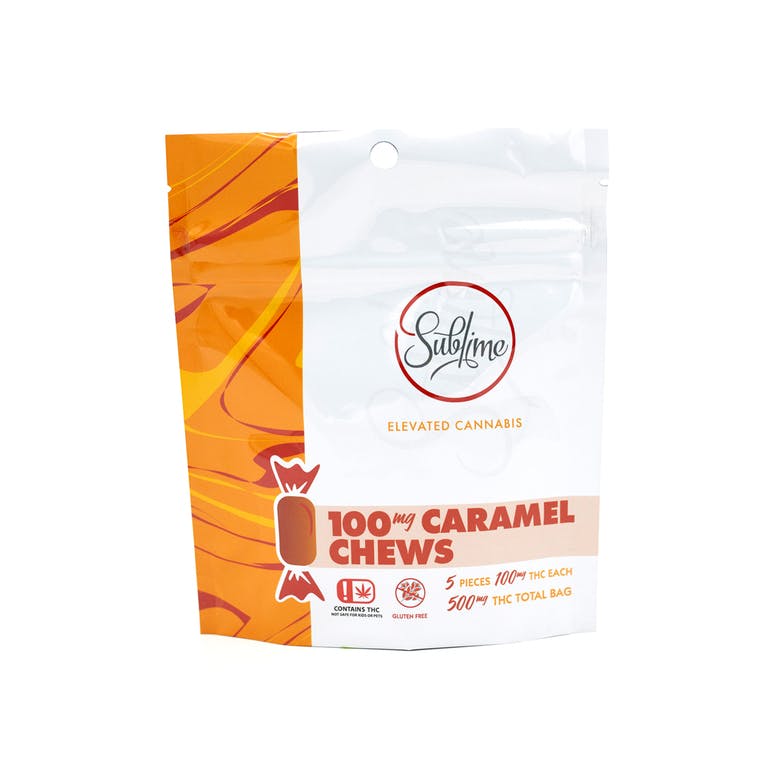 Old fashion caramel chew made from pure cane sugar + cream and infused with Sublime Champagne Distillate. 5 individually wrapped caramels – 100mg each. 500mg THC total bag. Gluten free.